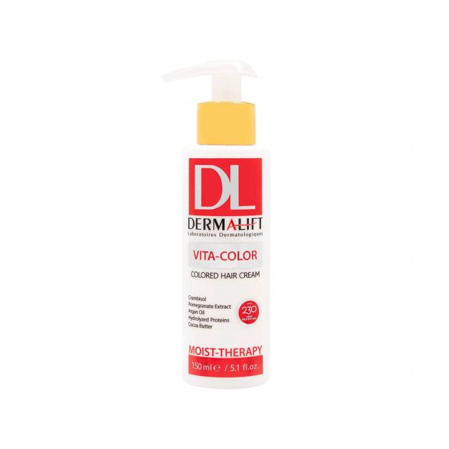 کرم مو ویتا کالر درمالیفت برای استفاده بعد از حمام موهای رنگ شده فرموله شده است که نیازی به آبکشی ندارد. این کرم مو رنگ مو را تثبیت کرده و از کدر شدن و رنگ پریدگی موها جلوگیری می کند. همچنین، با داشتن روغن آرگان و کرامب، موها را تغذیه، آبرسانی و مرطوب کرده و با ایجاد لایه محافظتی بر روی ساقه مو، موجب محافظت از مو در برابر حرارت و بهبود شانه پذیری و حالت دهی آن می شود.